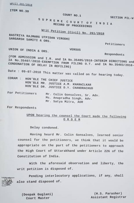 WPMS No.1173 of 2013, WPMS No.1014 of 2013 (Uttarakhand High Court). Writ Petition (Civil) No. 261/2018 (Supreme Court)